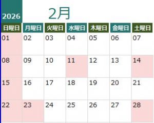 日曜祝日、第2・第4土曜日は定休日です。
